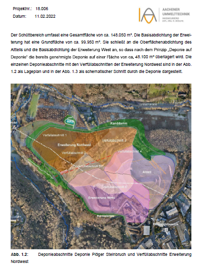 Der Erläuterungsbericht enthält in der Abb. 1.2 die Verfüllabschnitte der Erweiterung Nordwest (Abbildung links). Mittels Georeferenzierung dieser Grafik konnte ich sie in meinem Kartentool einbetten (Abbildung rechts).